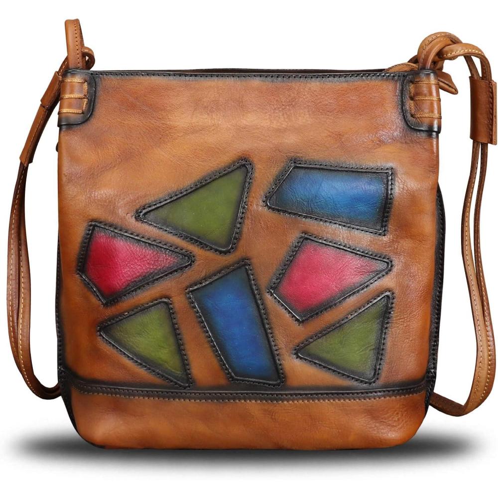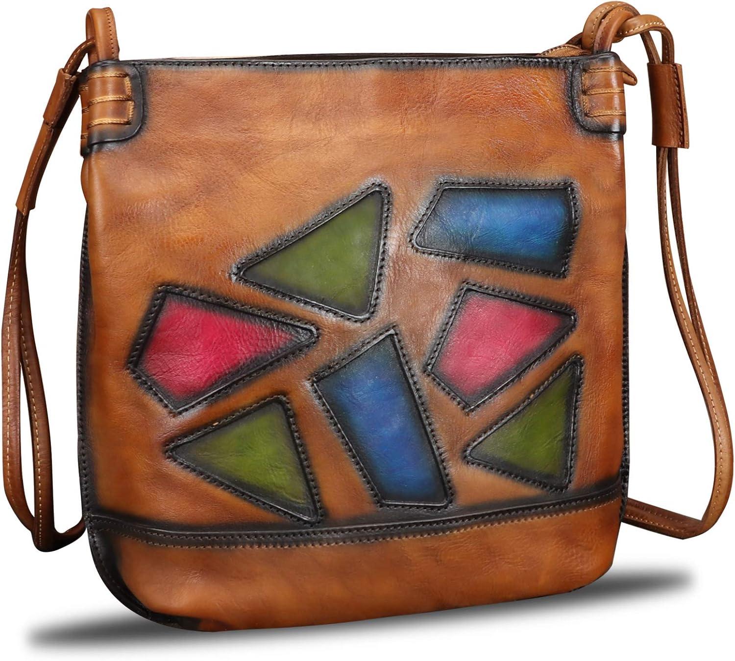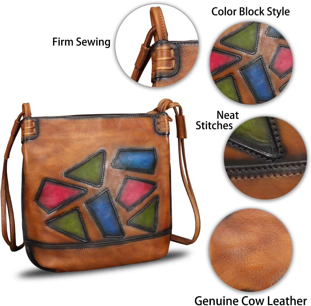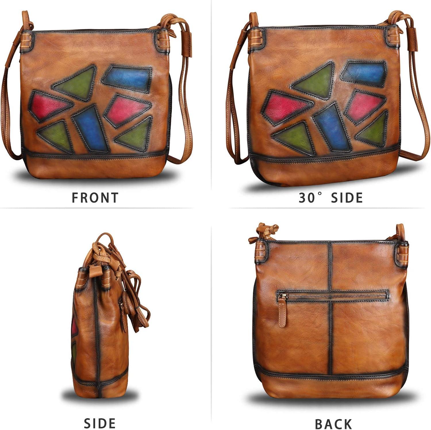 Genuine Leather Satchel for Women Purse Vintage Handmade Handbag Retro Designer Crossbody Shoulder Bag(Multicolor 2)