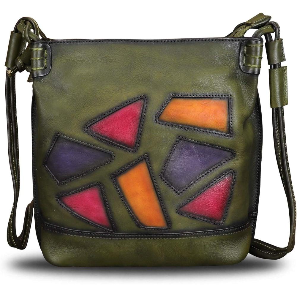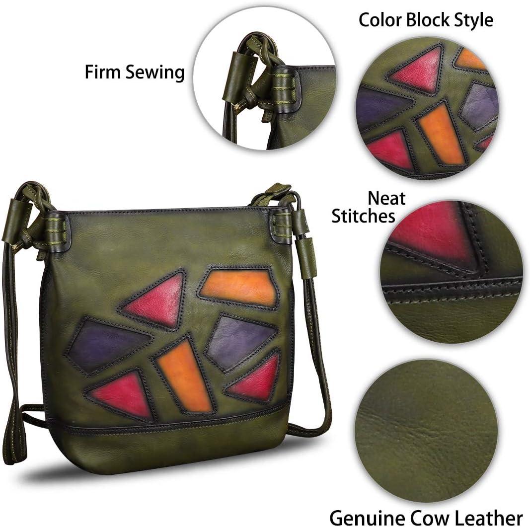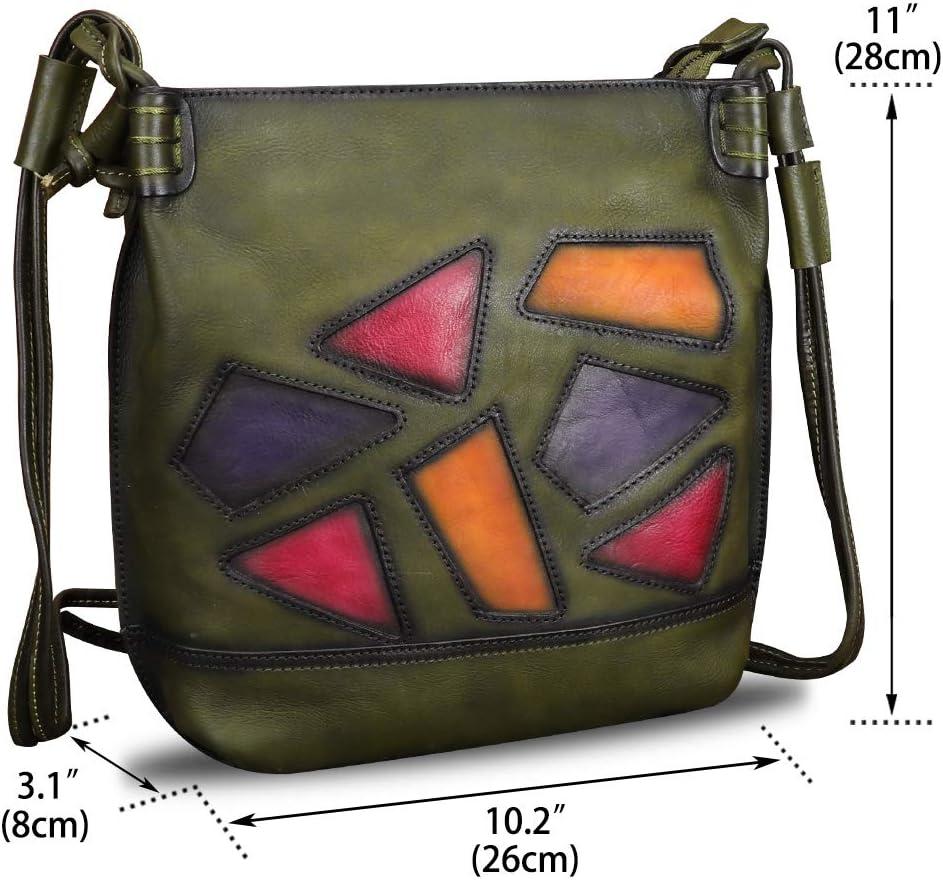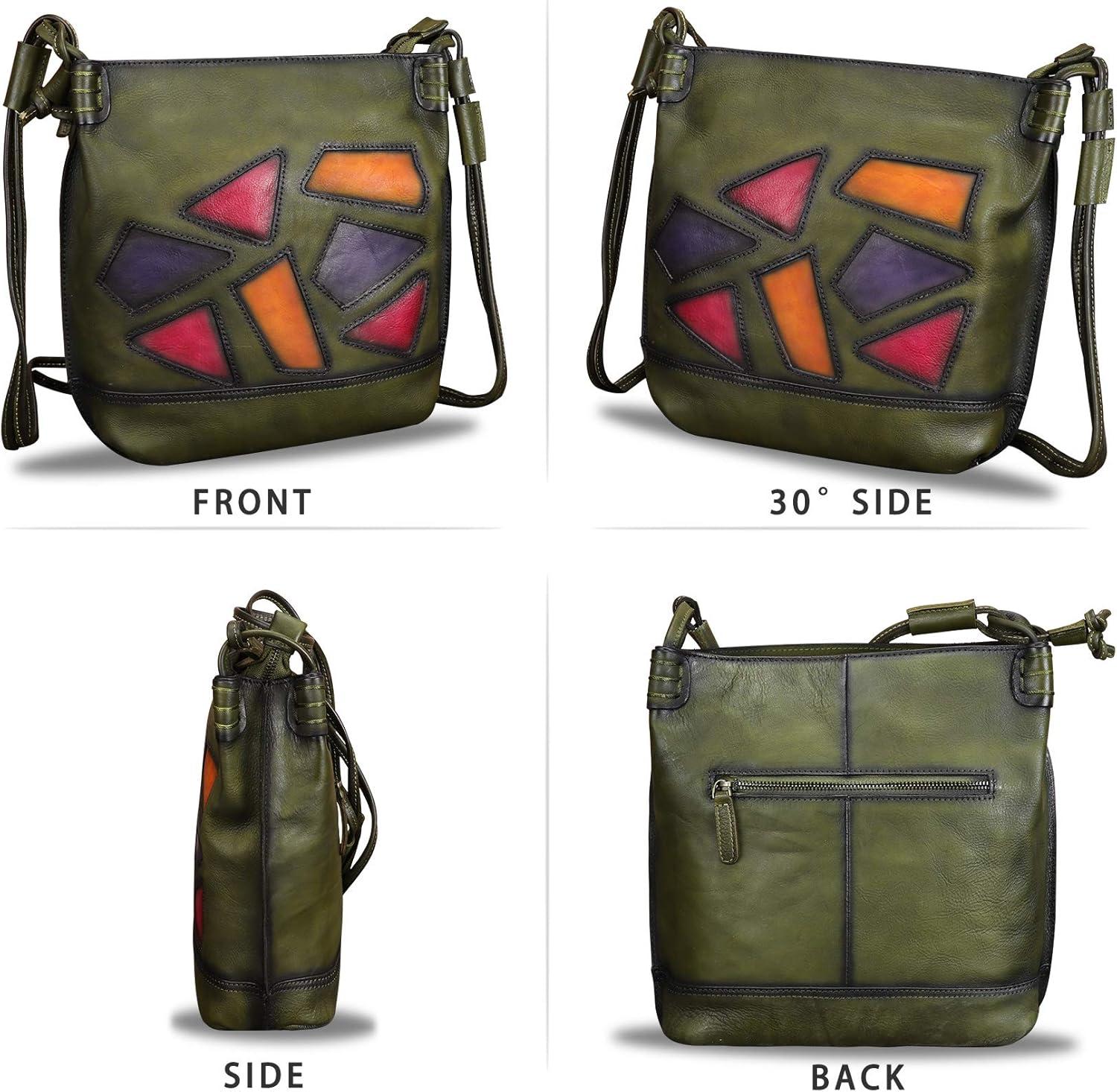 Genuine Leather Crossbody Purses for Women Satchel Purses Vintage Handmade Shoulder Bag Cowhide Handbags(Green)