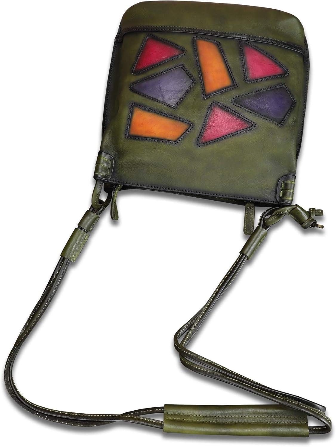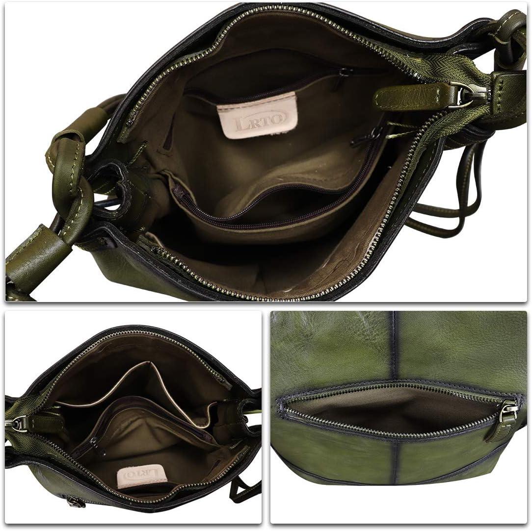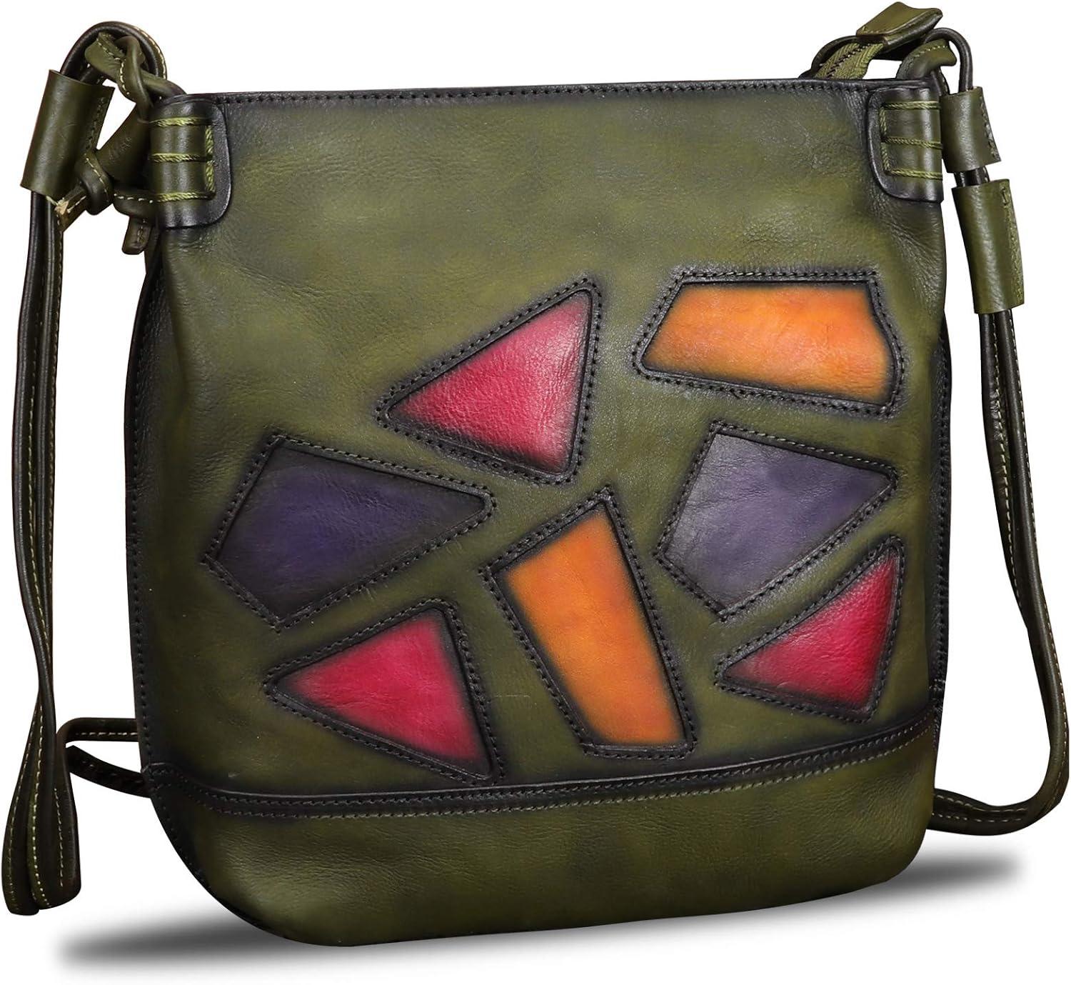 Genuine Leather Crossbody Purses for Women Satchel Purses Vintage Handmade Shoulder Bag Cowhide Handbags(Green)