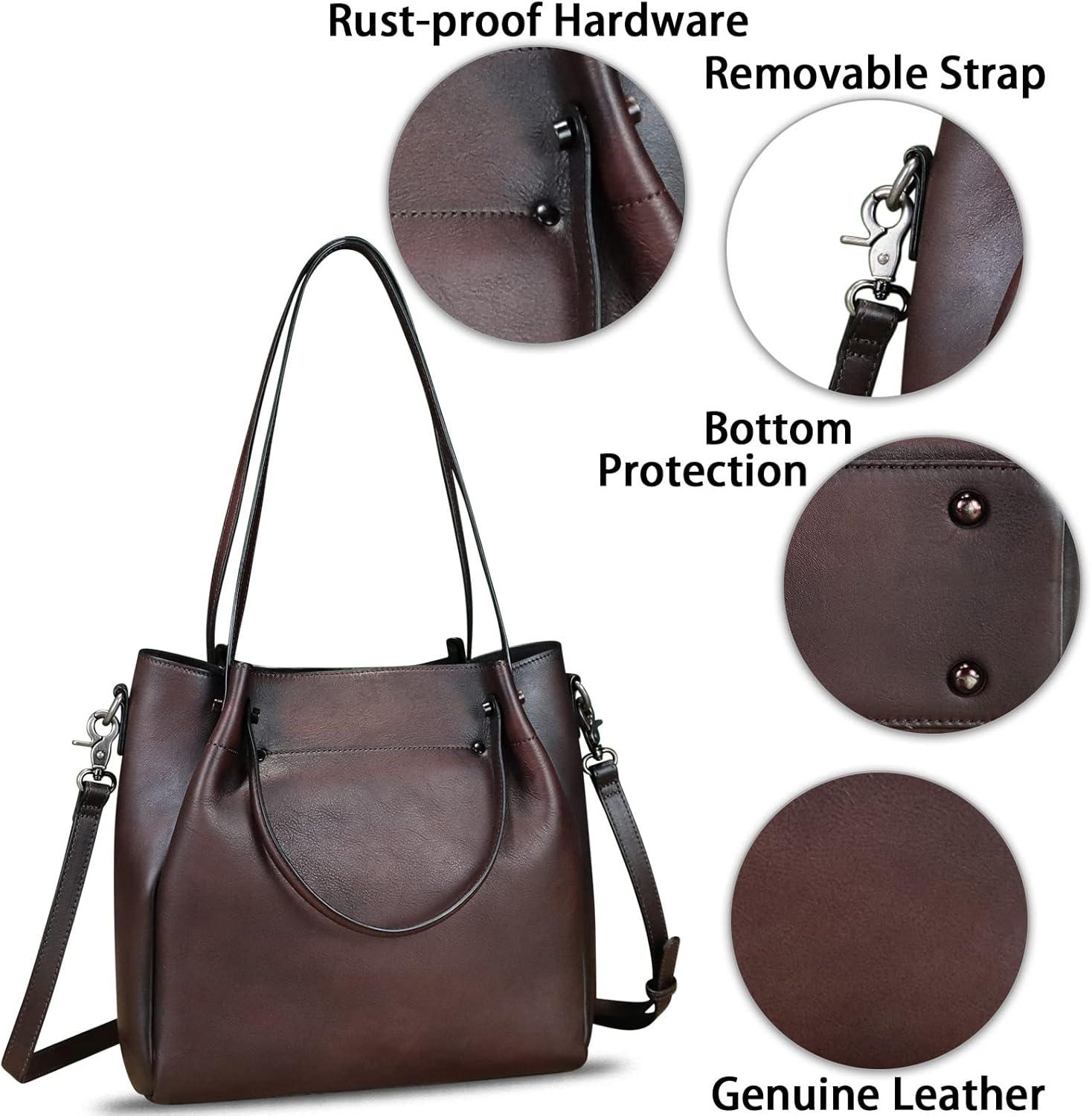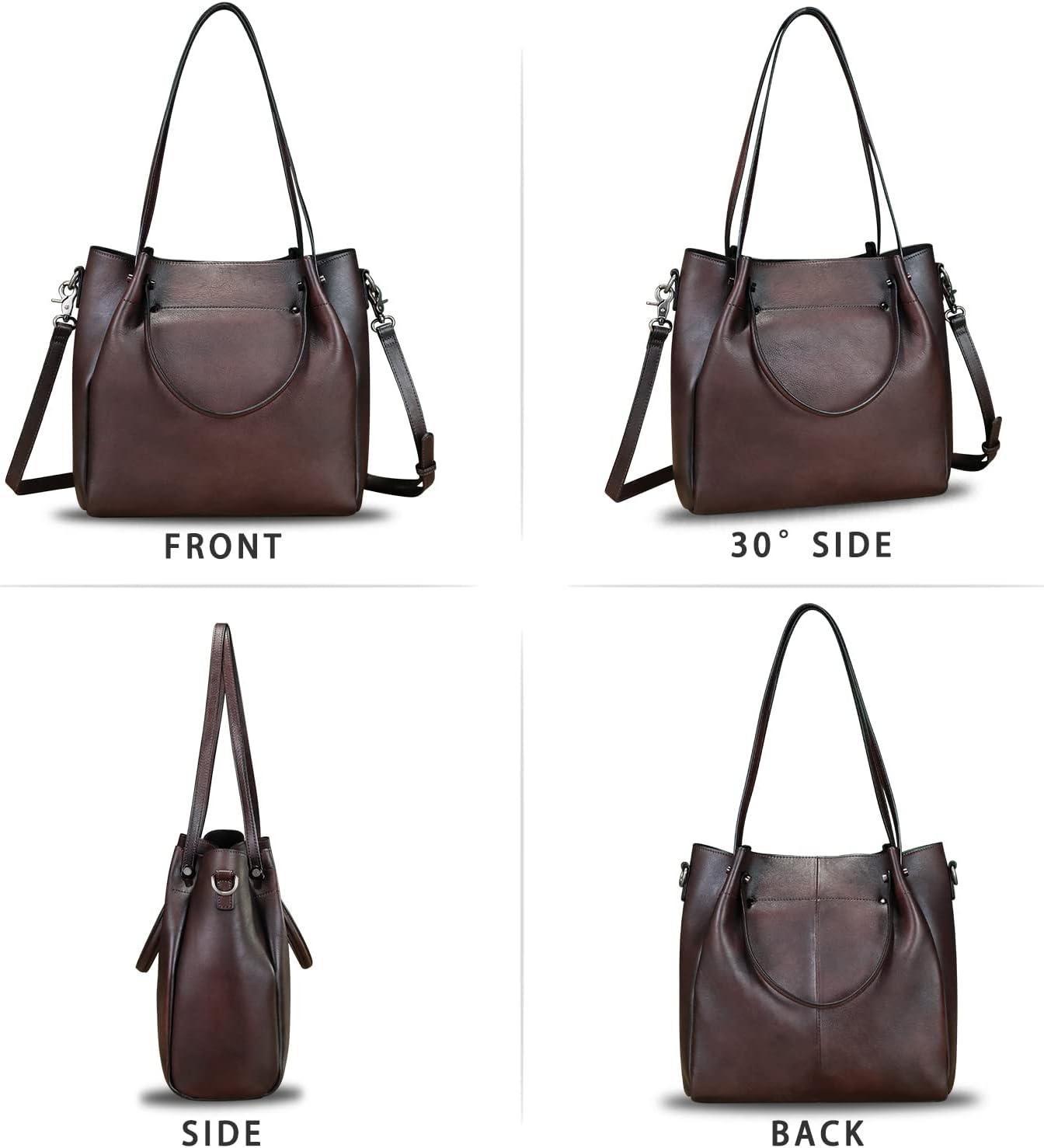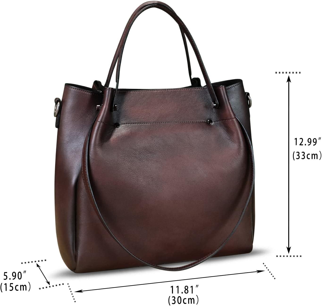 Genuine Leather Handbags for Women Satchel Purses Vintage Handmade Shoulder Bag Top Handle Handbag Totes(Coffee)