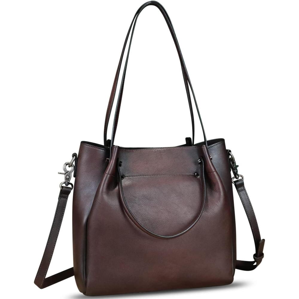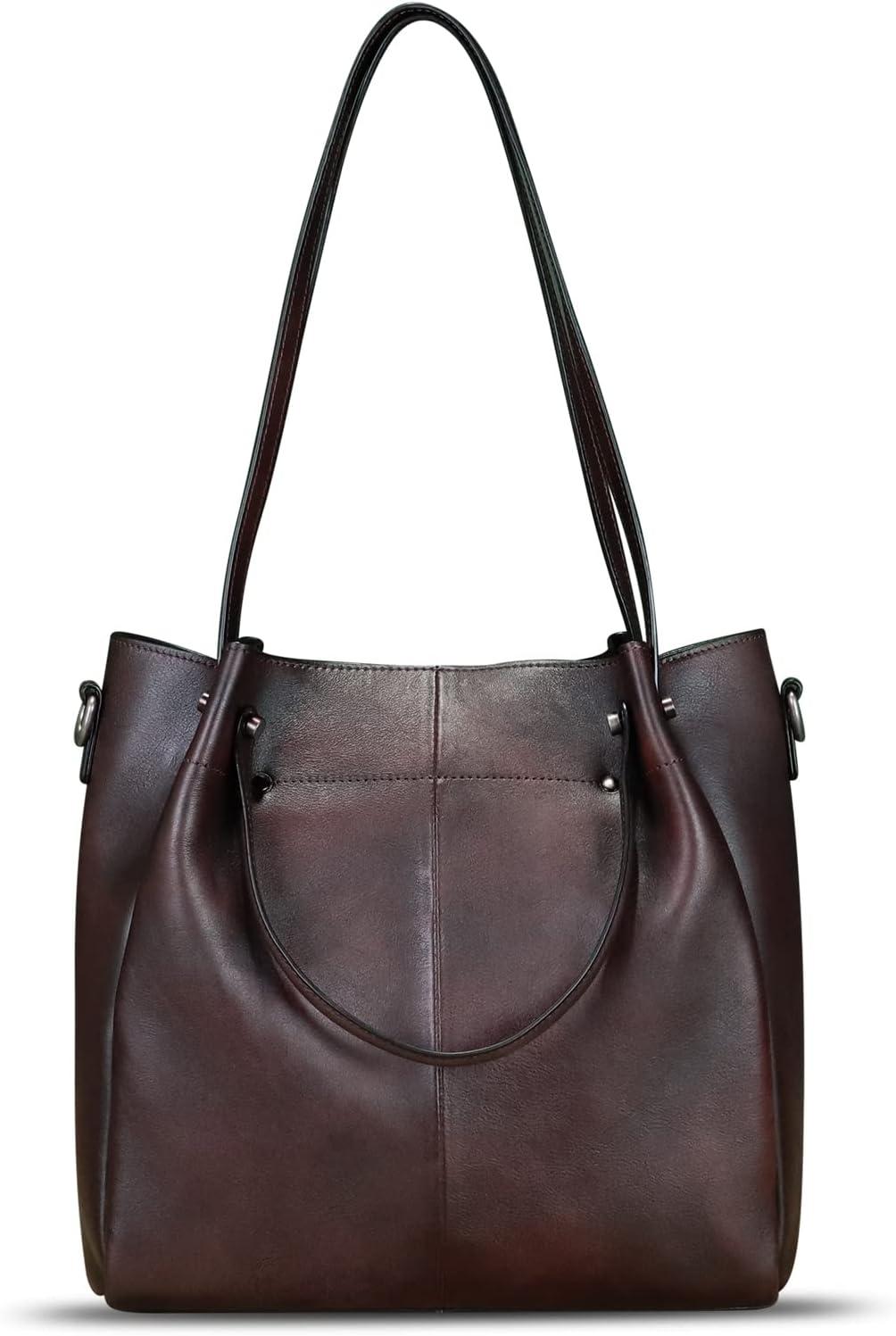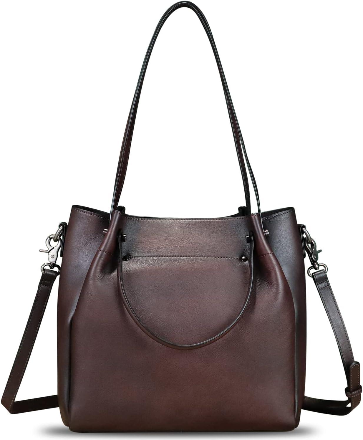 Genuine Leather Handbags for Women Satchel Purses Vintage Handmade Shoulder Bag Top Handle Handbag Totes(Coffee)