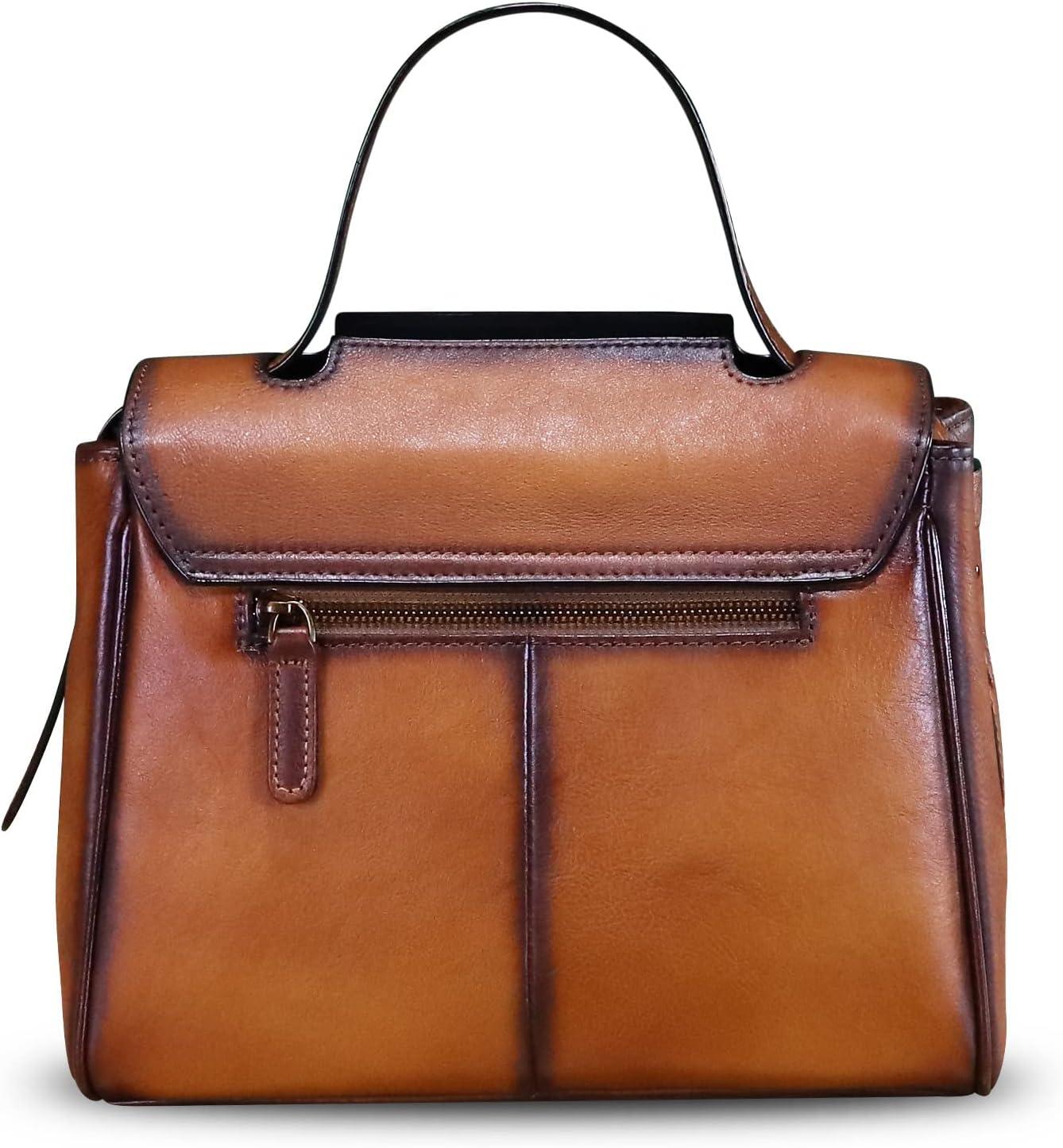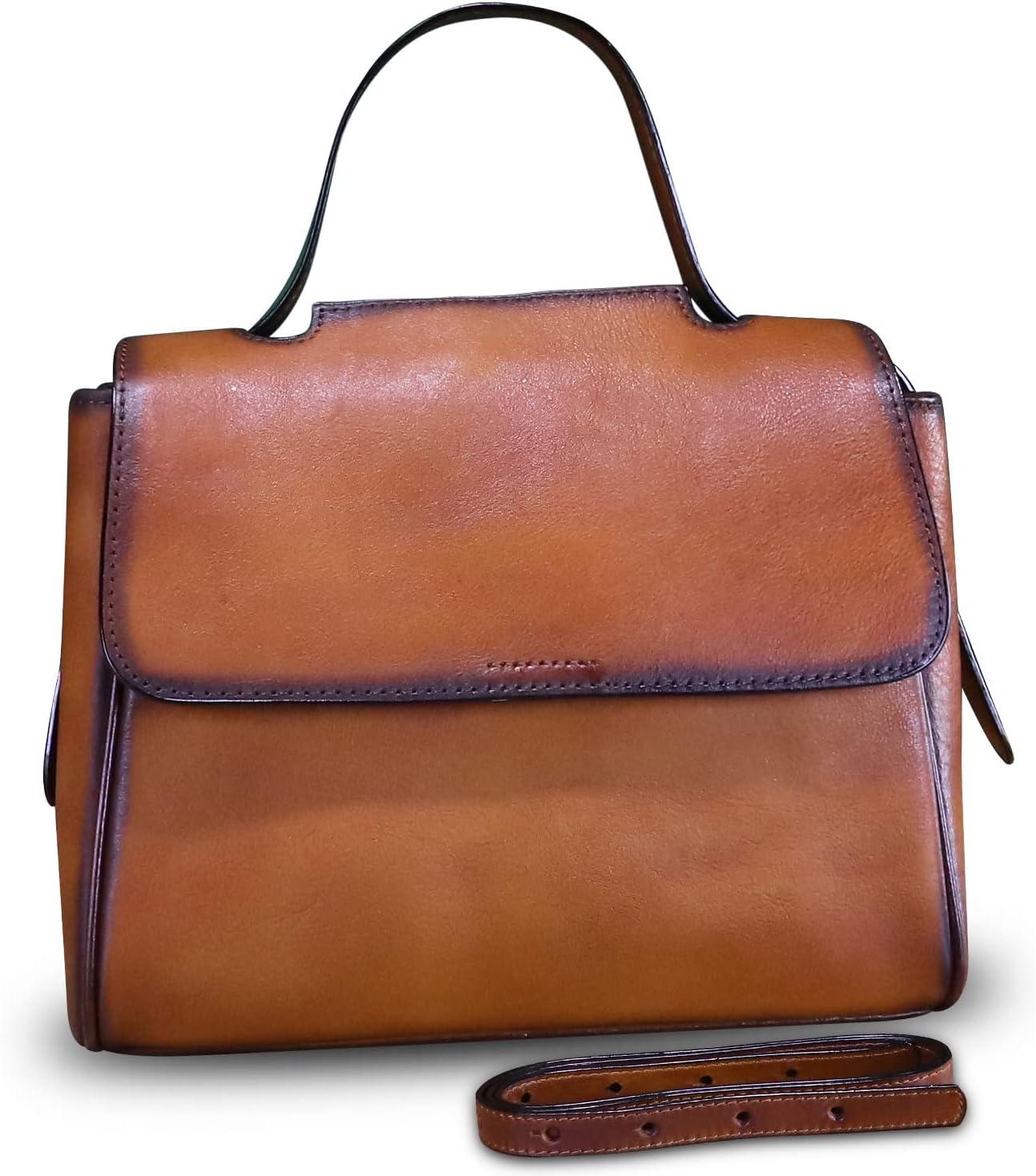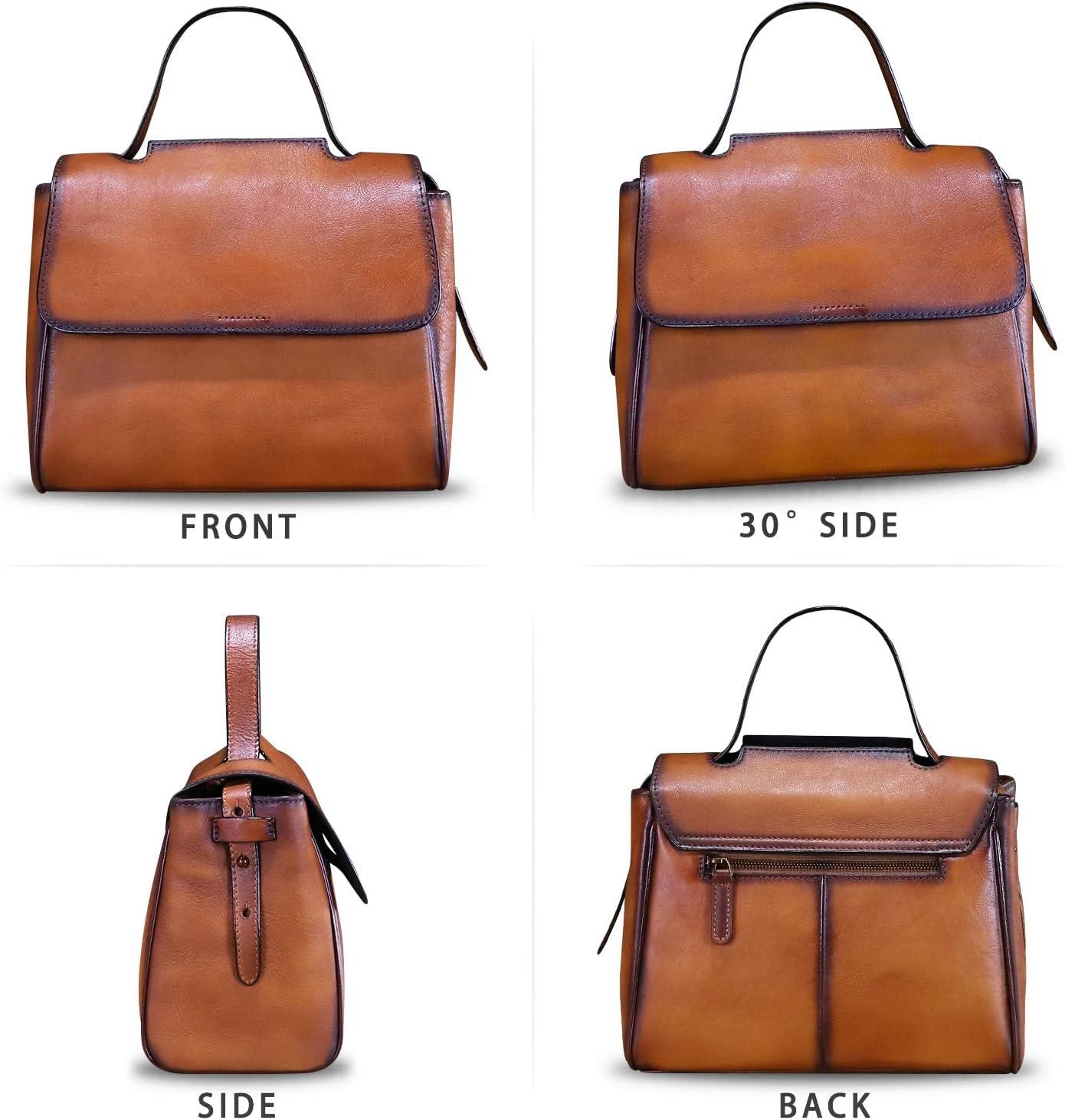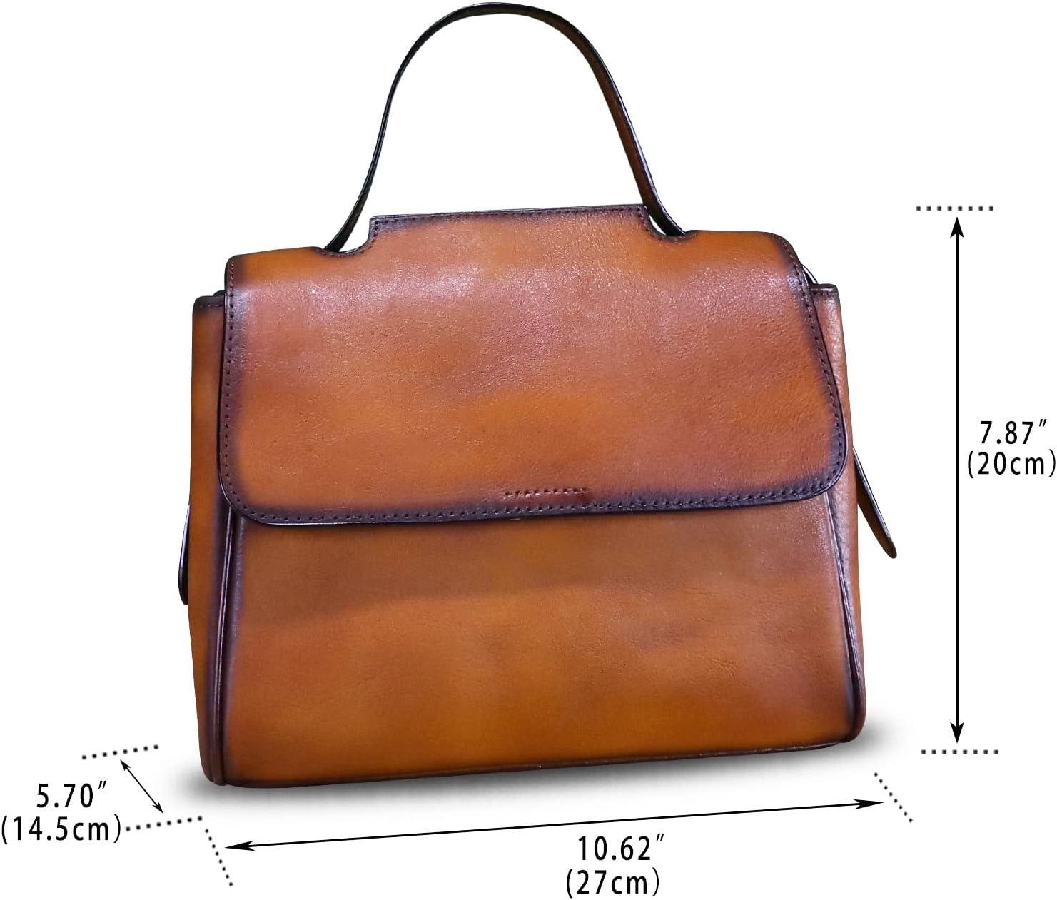 Genuine Leather Satchel for Women Handmade Vintage Top Handle Handbag Retro Cowhide Crossbody Handbags Purse(Brown)