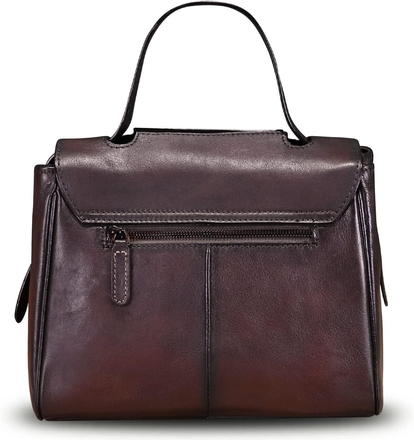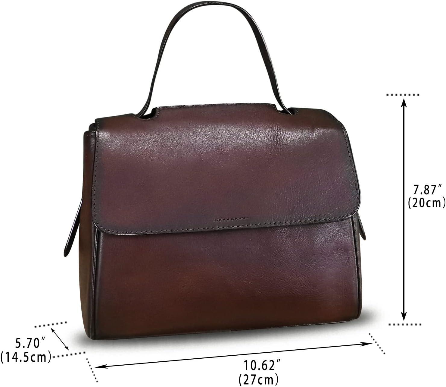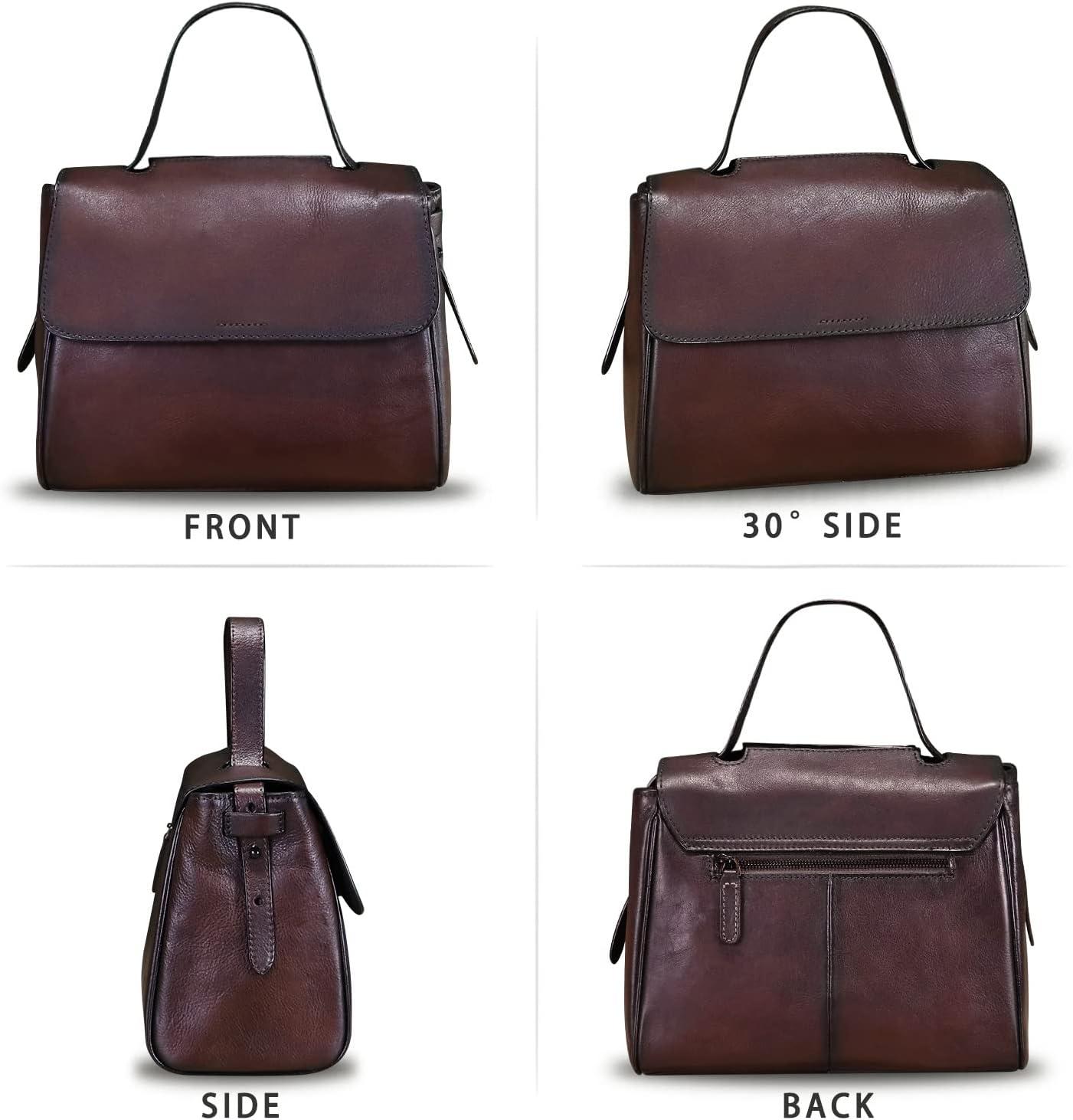Genuine Leather Satchel for Women Handmade Vintage Top Handle Handbag Retro Cowhide Crossbody Handbags Purse(Coffee)