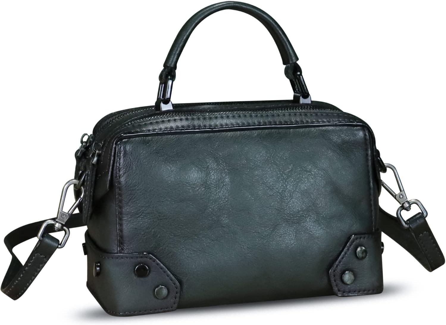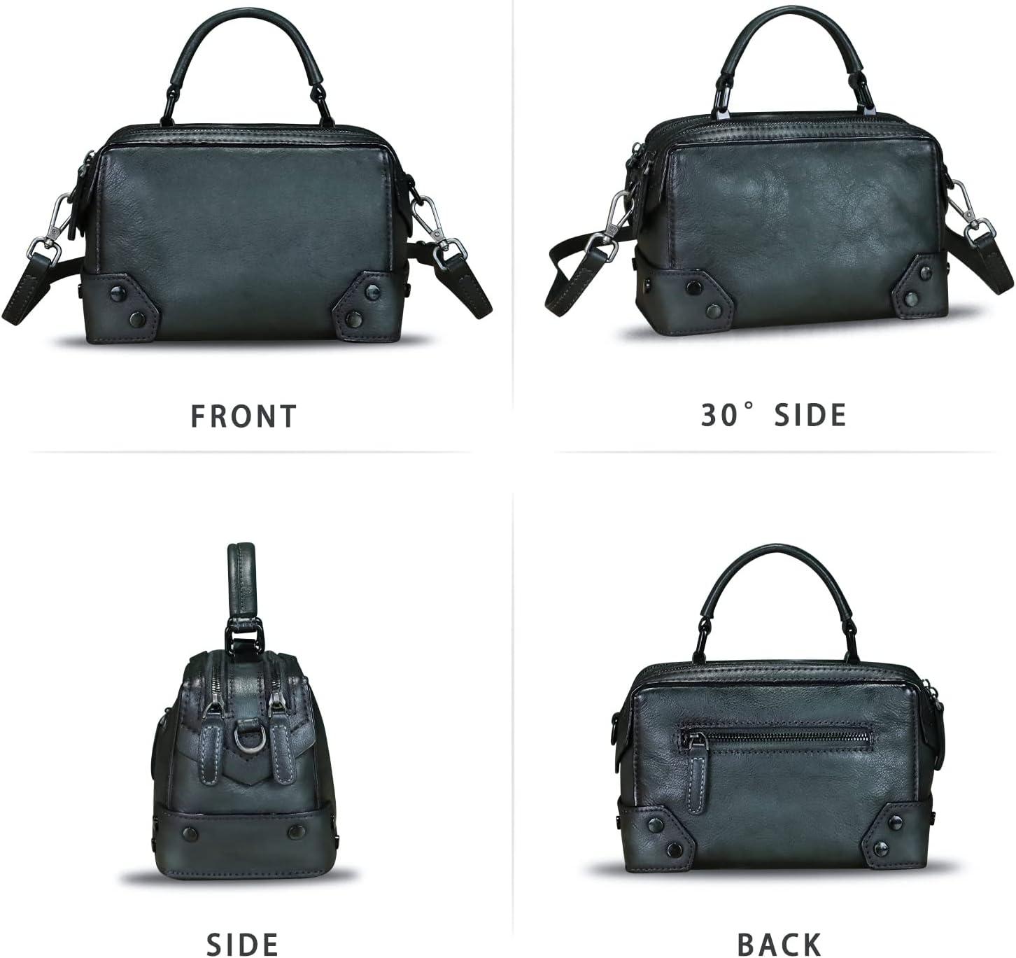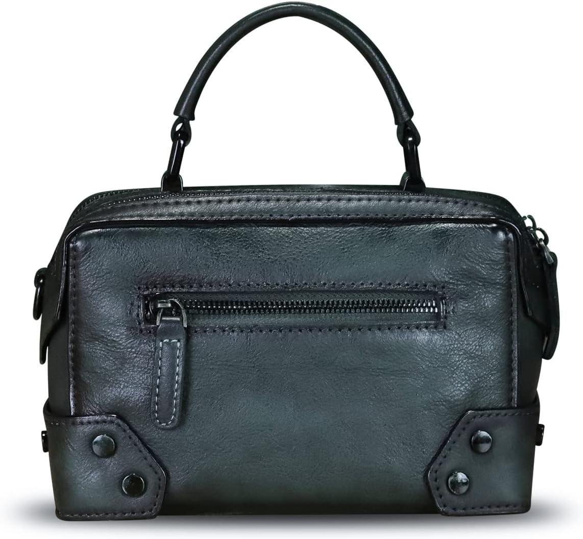 Genuine Leather Satchel for Women Purse Vintage Handmade Top Handle Handbag Retro Designer Crossbody Bag Purse(Darkgrey)