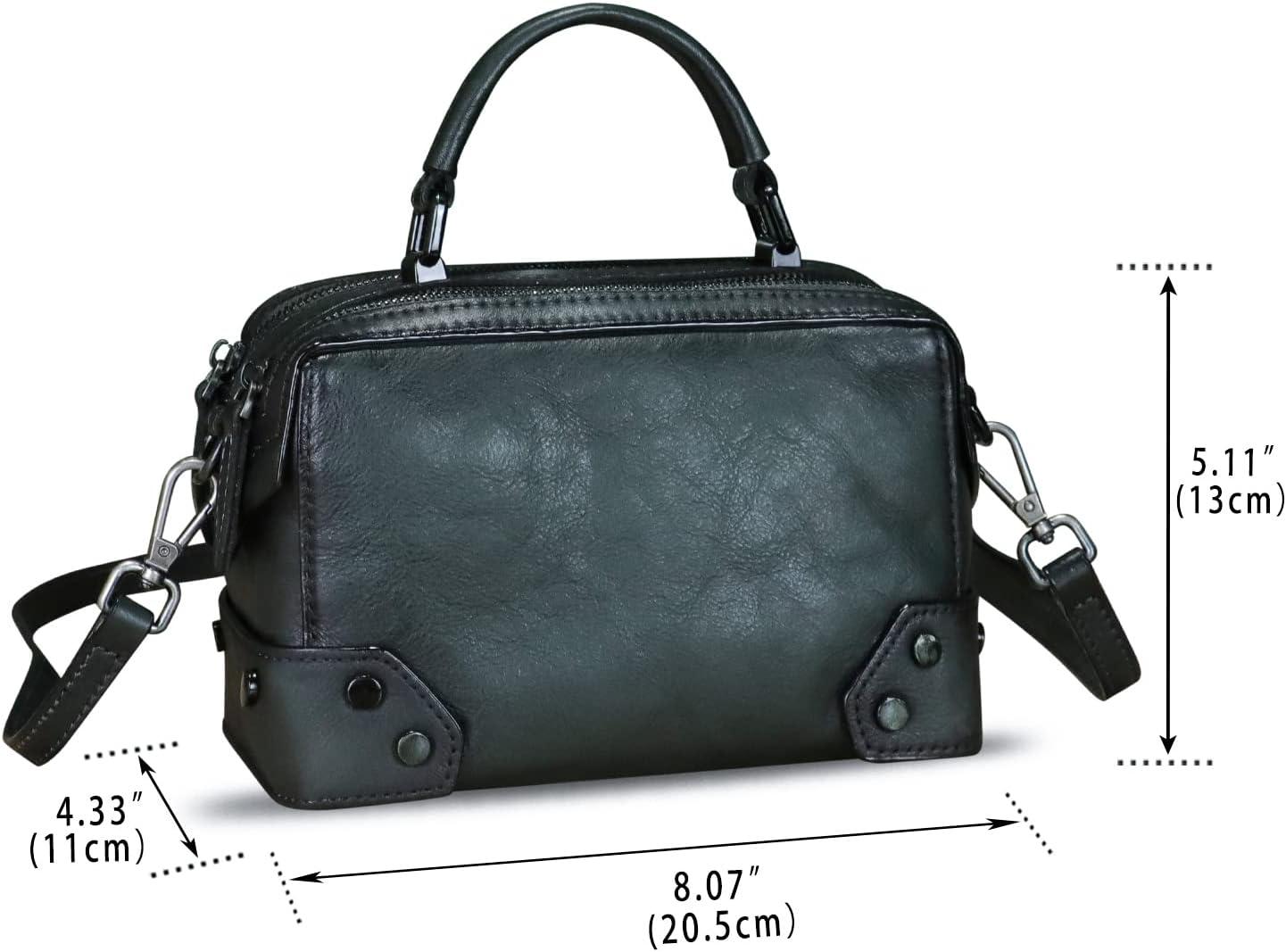 Genuine Leather Satchel for Women Purse Vintage Handmade Top Handle Handbag Retro Designer Crossbody Bag Purse(Green)