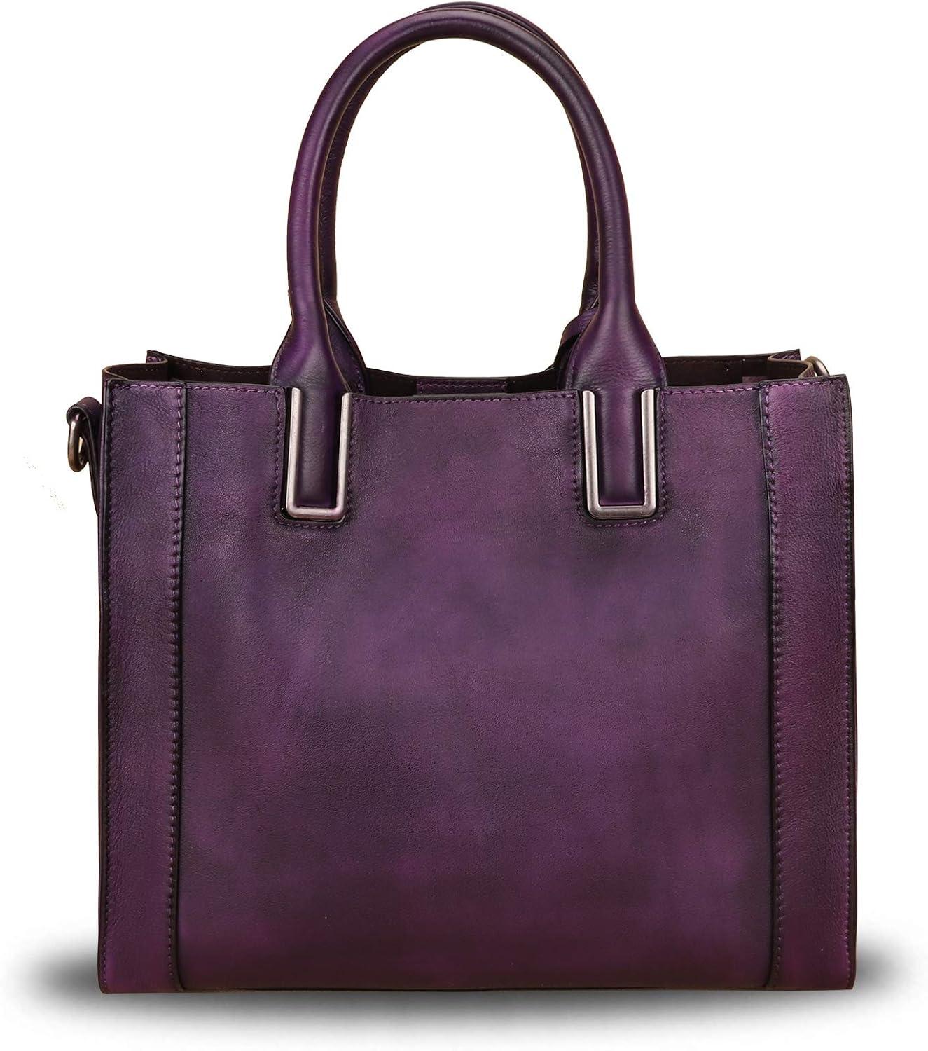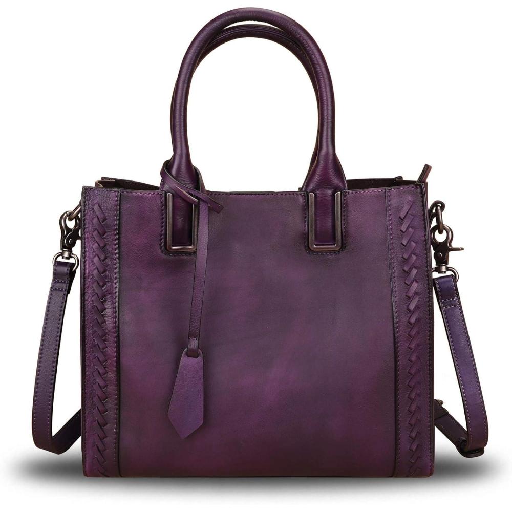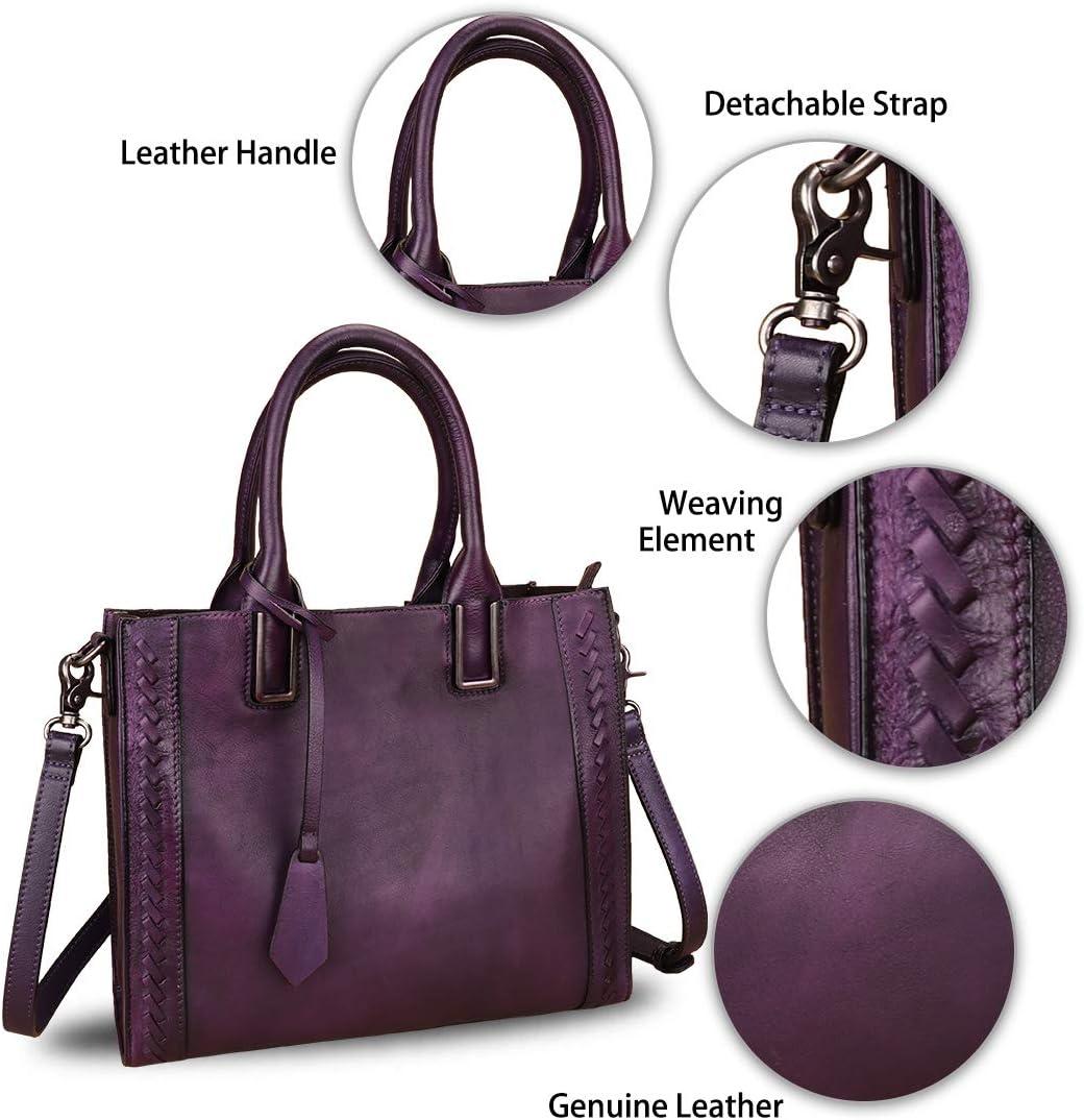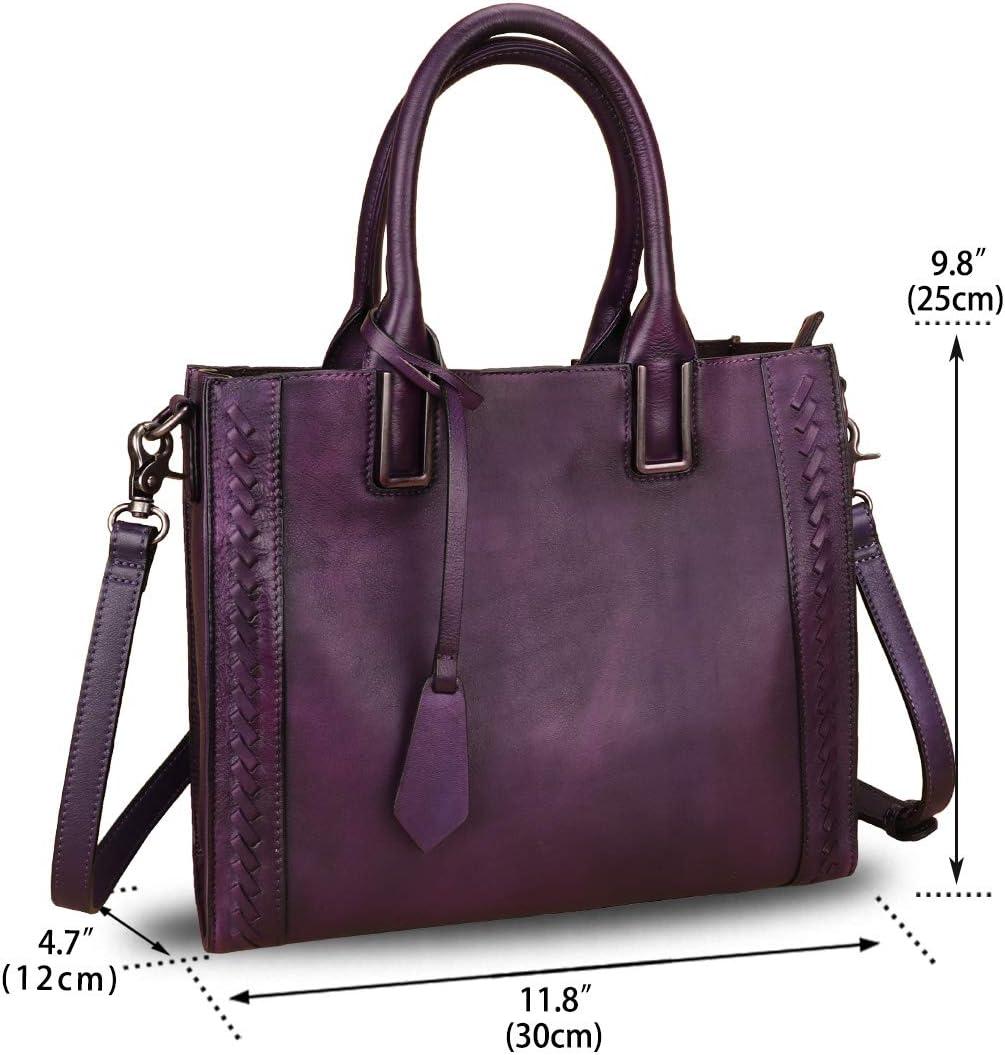 Genuine Leather Satchel Handbag for Women Vintage Handmade Shoulder Bag Cowhide Tote Purse(Purple)
