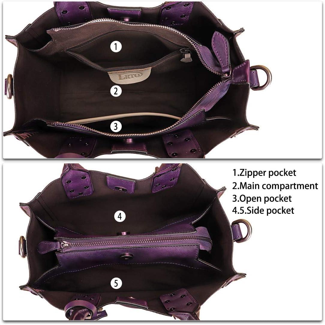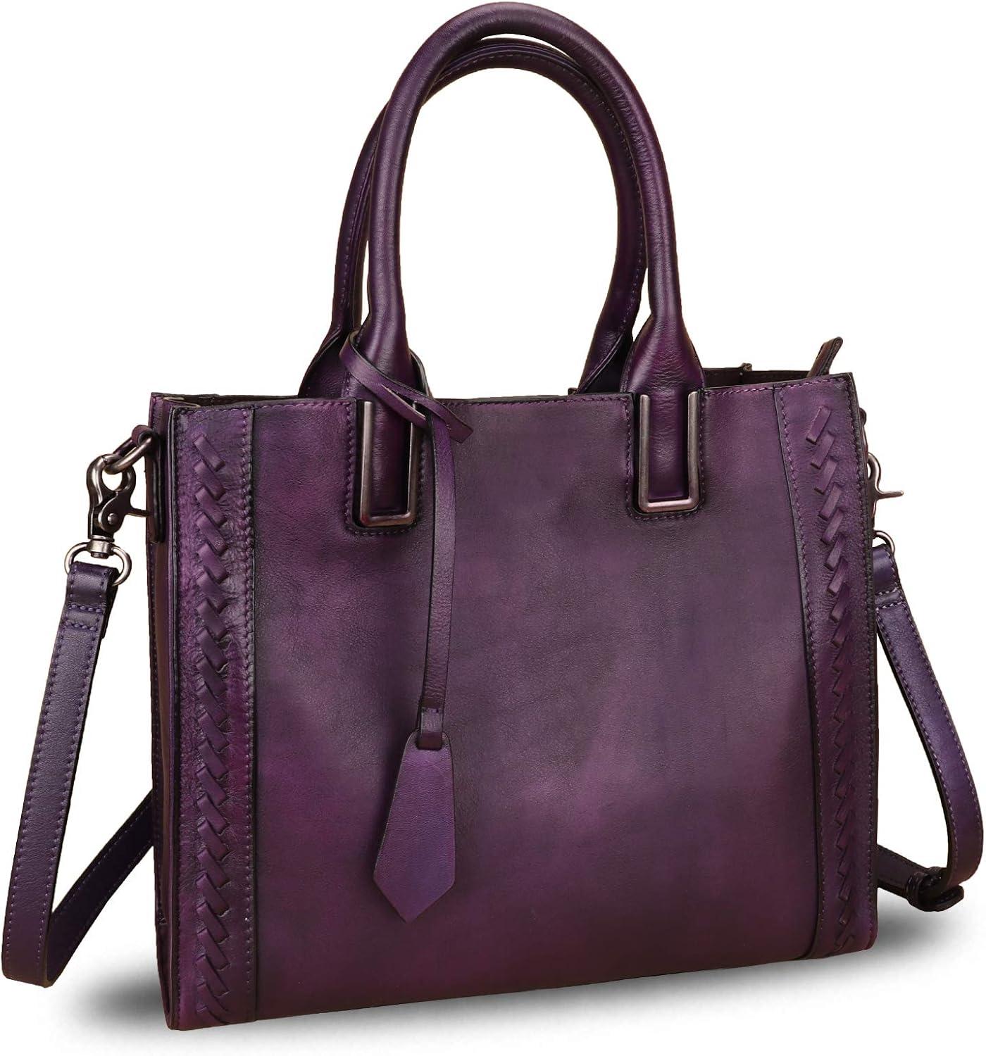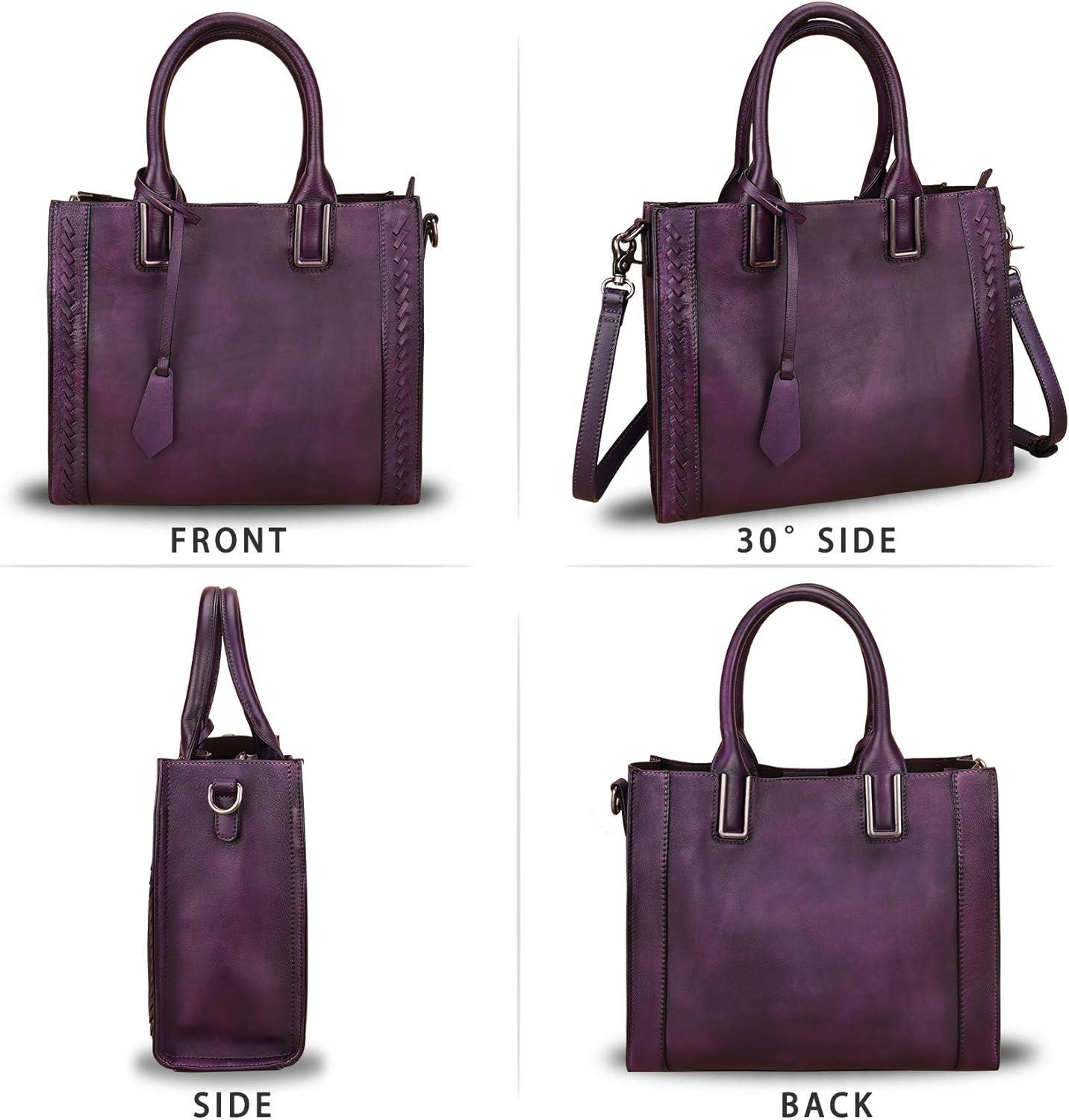 Genuine Leather Satchel Handbag for Women Vintage Handmade Shoulder Bag Cowhide Tote Purse(Purple)