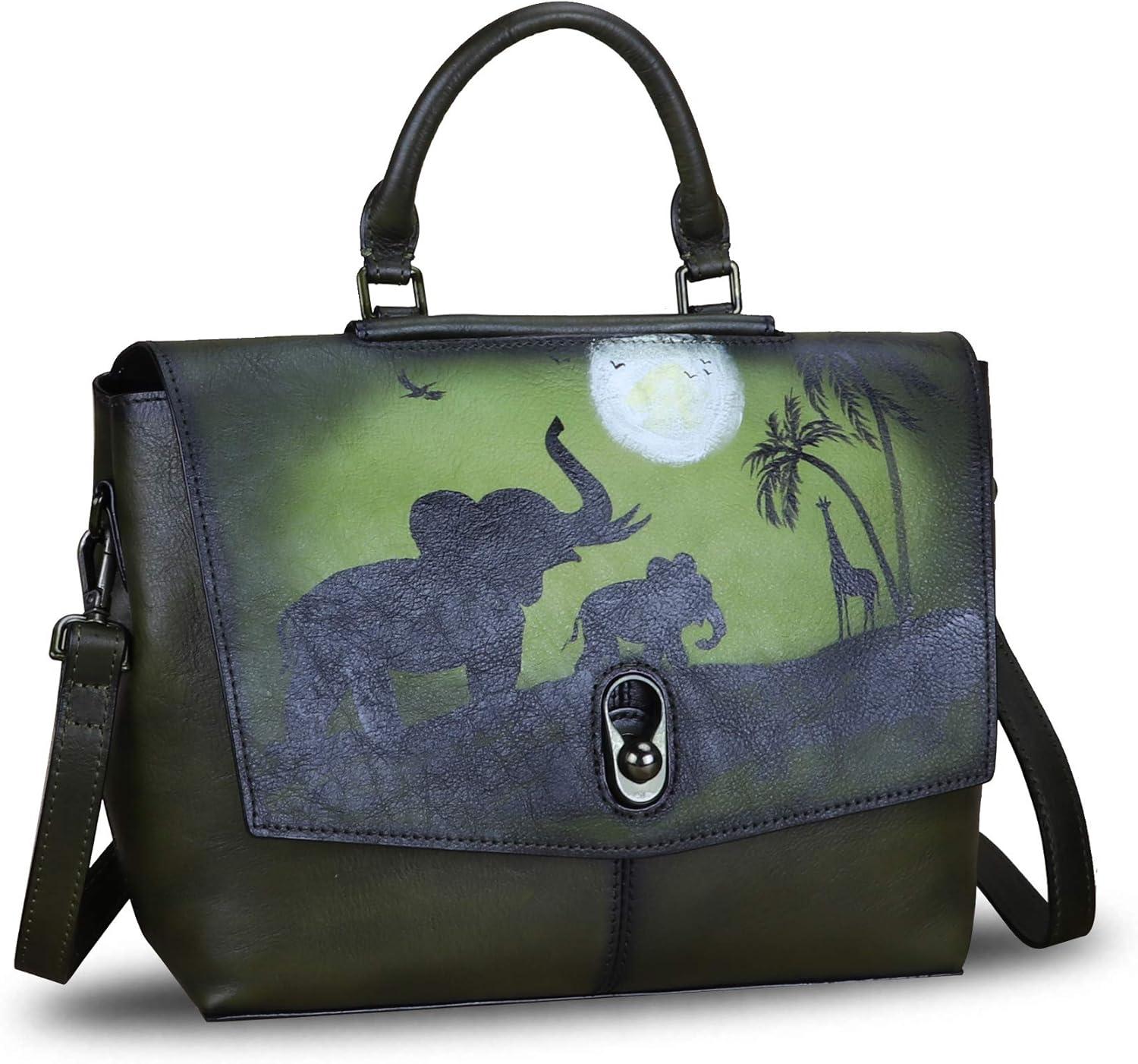 Genuine Leather Satchel Purses Handbags for Women Large Capacity Shoulder Bags Lady Work Top Handle Crossbody Bag(Greenhp)
