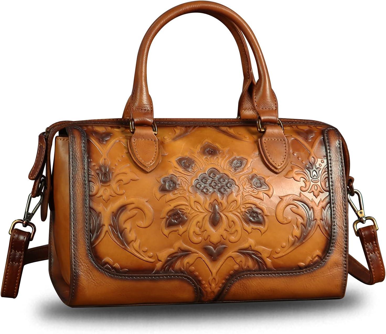 Genuine Leather Top Handle Handbag for Women Handmade Vintage Satchel Retro Cowhide Crossbody Handbags Purse Hobo Bags(Coffee)
